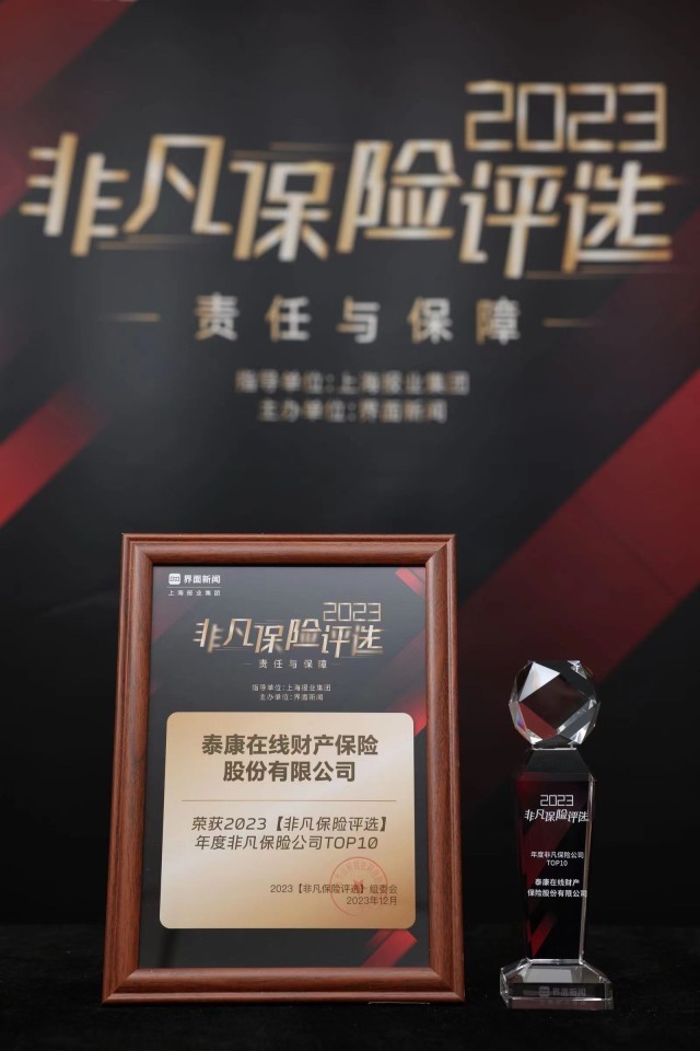 12月20日,由上海报业集团|界面新闻主办的“2023非凡保险评选”颁奖典礼成功举行,泰康在线凭借其在业务发展、科技赋能、风险管理、社会责任等方面的出色表现,一举斩获“年度非凡保险公司TOP10”殊荣。